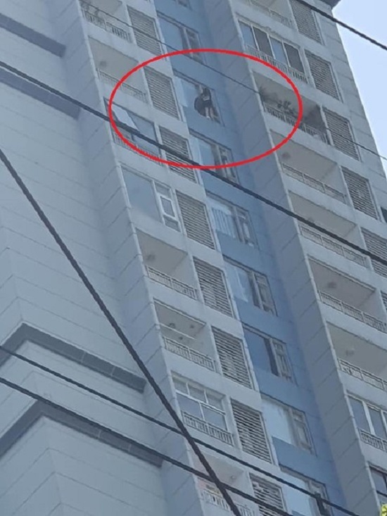 Một số nhân chứng cho hay, sáng cùng ngày cô gái xảy ra mâu thuẫn với người thân trong gia đình và leo ra lan can chung cư với ý định tự tử.