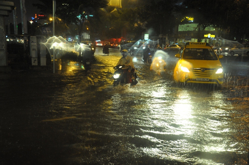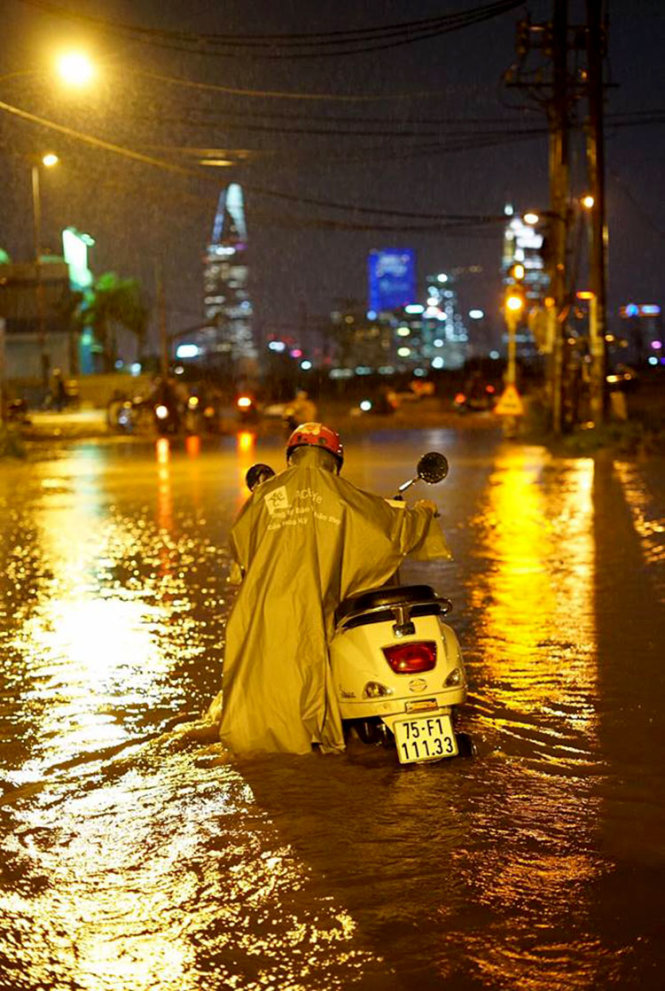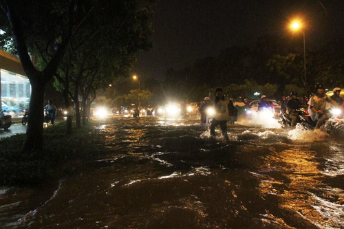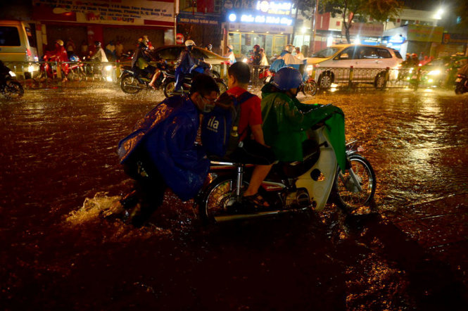 Cơn mưa kéo dài suốt gần 2 tiếng đồng hồ đã khiến nhiều tuyến đường như Kha Vạn Cân, Võ Văn Ngân, Phạm Văn Đồng (quận Thủ Đức), Nơ Trang Long, Đinh Tiên Hoàng, Phan Đăng Lưu, Nguyễn Hữu Cảnh (quận Bình Thạnh), Lương Định Của, Nguyễn Thị Định (quận 2), Nguyễn Hữu Cảnh, Đinh Tiên Hoàng, Tầm Vu, Xô Viết Nghệ Tĩnh (quận Bình Thạnh), Phan Xích Long (quận Phú Nhuận), Phan Huy Ích, Lê Đức Thọ (quận Gò Vấp), Nguyễn Văn Quá (quận 12)… ngập sâu, có nơi ngập gần 1m khiến nhiều phương tiện chết máy, người dân phải bì bõm lội nước để trở về nhà trong đêm tối.