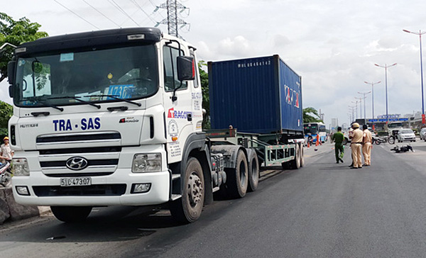 Trước đó, cũng trên địa bàn quận 9, vào khoảng 13h cùng ngày, một người đàn ông đi xe máy ở làn đường ô tô trên xa lộ Hà Nội (hướng từ cầu Sài Gòn về ngã tư Thủ Đức) thì xảy ra va chạm với xe container chạy cùng chiều lúc gần tới ngã tư RMK.