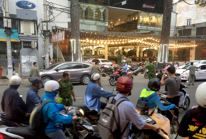 Lực lượng chức năng khám nghiệm hiện trường, điều tra vụ người đàn ông bị chém ở TP. HCM. Ảnh: Tiền Phong |