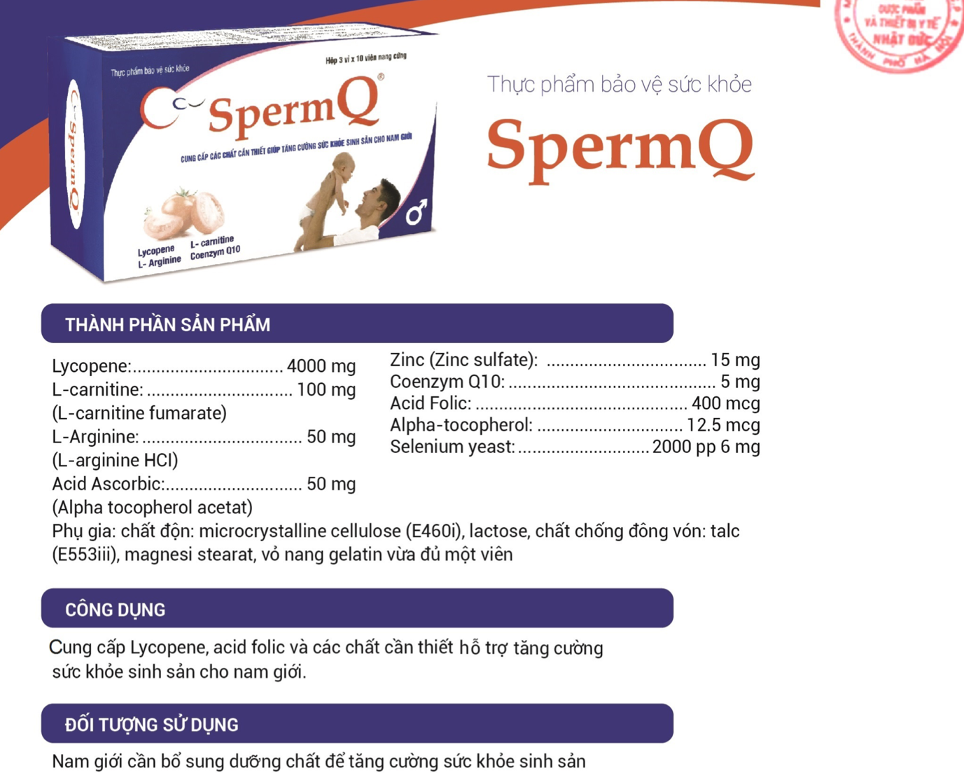 Sản phảm SpermQ được cấp giấy phép là TPBVSK |