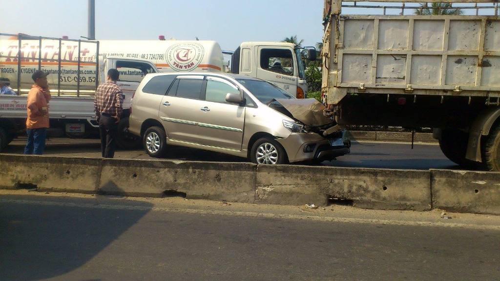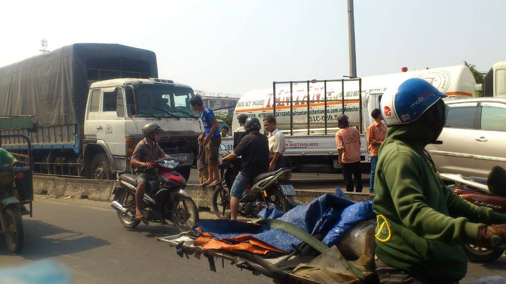 Thông tin ban đầu, vào thời điểm trên, khi các phương tiện đang dừng đèn đỏ tại giao lộ Nguyễn Văn Quá – Quốc lộ 1A (Q.12, TP.HCM), bất ngờ chiếc xe tải nặng mang BKS 63L – 6971 (chưa rõ danh tính tài xế) từ phía sau lao tới tông mạnh vào một chiếc xe tải nhẹ mang BKS 51C – 181.41.