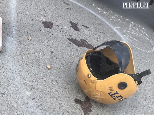 Chiếc mũ của Trung tá Nhân bị văng ra đường. Ảnh: Pháp luật TP.HCM |