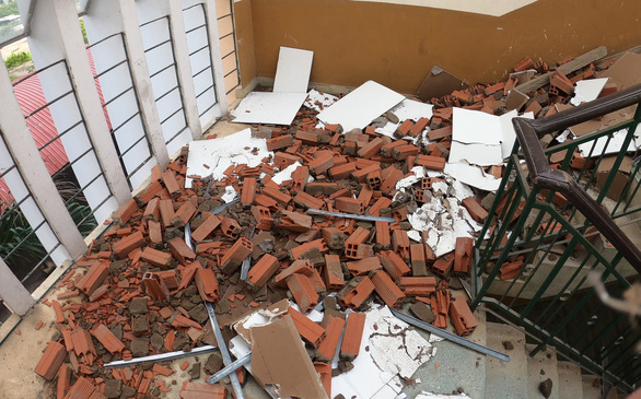 Gạch, vữa rơi khắp nơi bên trong các tòa nhà. |