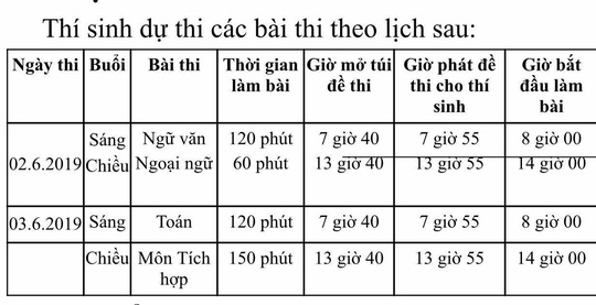 Lịch thi chương trình tích hợp. Ảnh: VTC News |