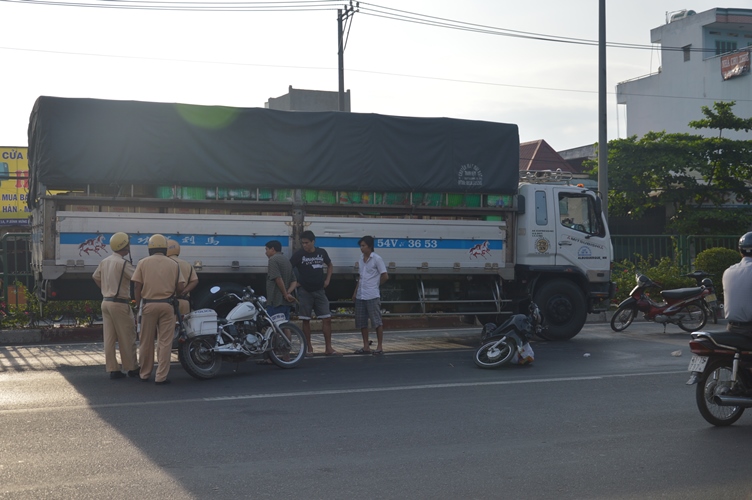 Cùng lúc, xe tải BKS 54V – 3653 do tài xế Trần Thanh Giang (44 tuổi, quê Tiền Giang) điều khiển từ sau chạy tới không tránh kịp đã va quẹt với người đàn ông. Nạn nhân bị thương nặng nhanh chóng được chuyển đi cấp cứu.