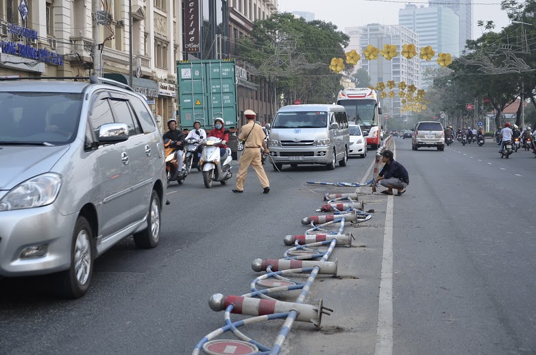 (ĐSPL) - Cuộn sắt nặng hàng tấn rơi từ xe container xuống văng vào 2 xe máy đang đi trên đường, khiến 3 người trọng thương.