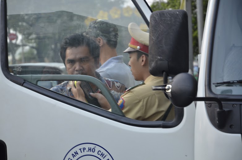 CSGT kiểm tra nồng độ cồn tài xế container. |