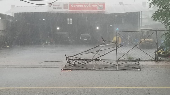 Hình ảnh hàng rào bị đổ trên đường Hiệp Bình |