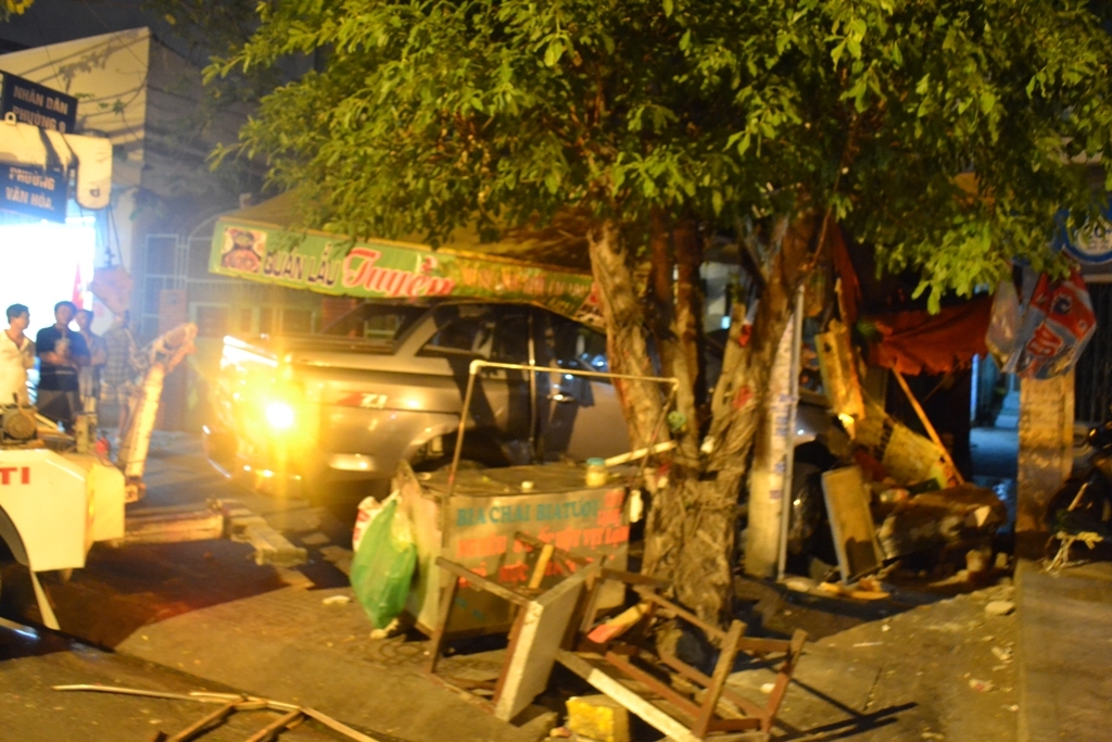 Tại hiện trường, chiếc ô tô và 5 chiếc xe máy bị hư hỏng nặng. Quán nhậu bị đổ sập phần cửa phía trước, hệ thống mái che và nhiều đồ đạc hư hại.