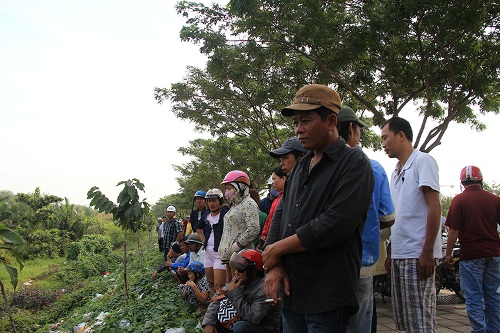 Người dân hiếu kỳ đứng trên bờ kênh xem sự việc. |