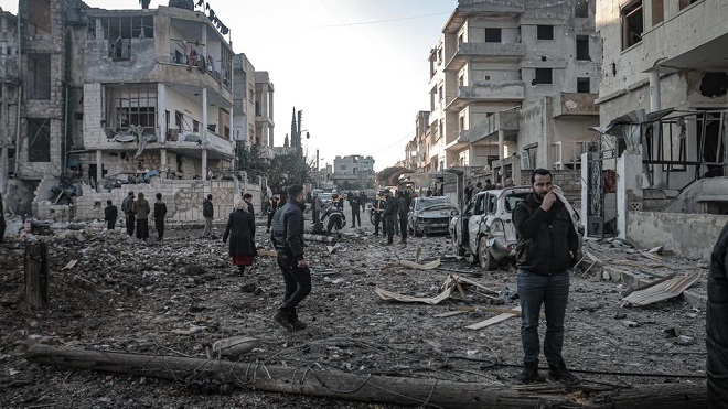 Cảnh tan hoang tại Idlib, Syria sau các cuộc tấn công. Ảnh: AMN |