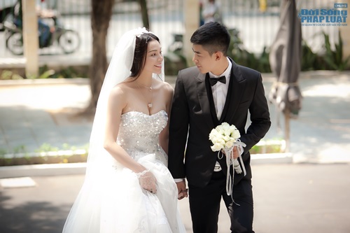 (ĐSPL) - Trà Ngọc Hằng đã thể hiện trọn vẹn niềm hạnh phúc khôn tả của một cô dâu, hồi hộp khi được khoác tay người mình yêu bước vào thánh đường để kết duyên trăm năm cùng Cao Lâm Viên.