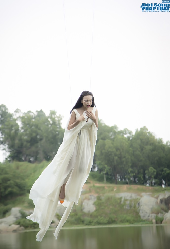 (ĐSPL) - Để có được những cảnh quay đậm chất "liêu trai" trong MV "Cánh nhạn chiều bay", Trà Ngọc Hằng không ít lần bị chóng mặt, ói mửa khi phải quay những cảnh bay lượn trên hồ, trên cây cao.
