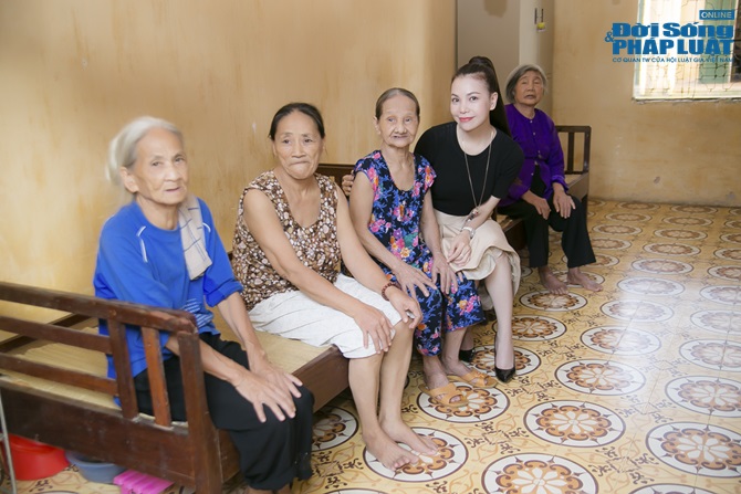 | Trà Ngọc Hằng dành nhiều thời gian đến thăm các cụ già ở Trung tâm bảo trợ. |