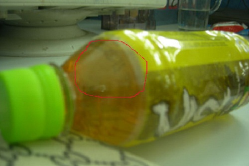 Màu của vật thể lạ này cùng màu với nước ở trong bình (vàng kem nhàn nhạt). Chai nước sản xuất ngày 21/9/08, có hạn sử dụng đến ngày 21/9/09.