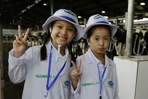 Các bạn nhỏ thì vô cùng phấn khích khi được các cô chú kỹ thuật viên cho sang thăm khu vực chuồng bê, được tận tay vuốt ve và cho những bạn bê uống sữa, ăn khẩu phần đặc biệt.