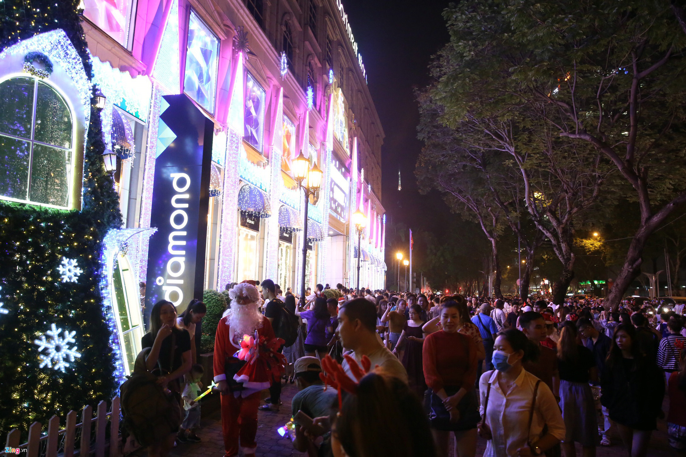 Trung tâm TP. Hồ Chí Minh lúc 20h tối 24/12, vài giờ trước lễ Giáng sinh, rất đông người đổ về quanh khu vực tòa nhà Diamond vui chơi Noel. Ảnh: Zing.vn |