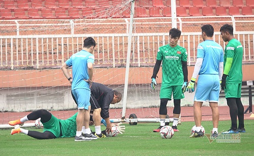 Vị trí thủ môn đang là một trong những vấn đề đáng bận tâm nhất của U23 Việt Nam. Trong buổi tập của đội vào hôm qua (27/12), chỉ trong một thoáng mất tập trung của 3 thủ môn Bùi Tiến Dũng, Văn Toản và Y Eli Niê, HLV Park Hang Seo ngay lập tức tiến đến nhắc nhở, đồng thời hướng dẫn từng động tác nhỏ nhất cho những người trấn giữ khung thành.