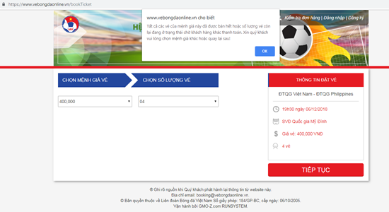 Tất cả các mệnh giá đều thông báo hết vé. |