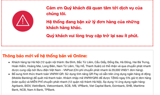 Lưu lượng người truy cập quá nhiều ngay trước thời điểm mở bán vé. |