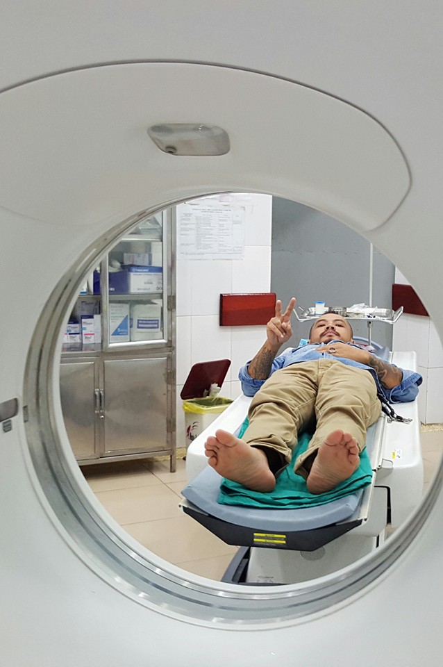 Cách đây ít phút, anh đăng tải những hình ảnh của mình khi đang chuẩn bị cho cuộc phẫu thuật sẽ diễn ra vào ngày mai. Trong ảnh, thủ lĩnh của Bức Tường cười khá tươi, thậm chí còn giơ ngón tay cái hướng về phía ống kính, thể hiện một thái độ lạc quan, mạnh mẽ khi đối mặt với bệnh tật.