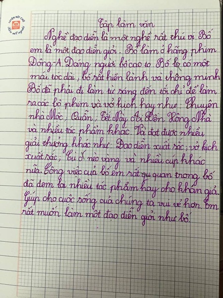 Vài ngày trước, vị đạo diễn nổi tiếng đã đăng tải lên trang cá nhân hình ảnh bài tập làm văn của bé Bờm. Nội dung bài văn là viết về nghề nghiệp của bố. Và Bờm đã viết như sau: