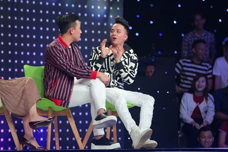 Không những vậy, Trường Giang và Trấn Thành còn lao ra sân khấu với màn tranh cãi hài hước, tạo nên tiếng cười cho khán giả trường quay. Thu Trang thất vọng về Cao Thái Sơn chỉ dựa vào việc thí sinh để miro ngay tầm miệng mà có thể dự đoán thí sinh hát hay.