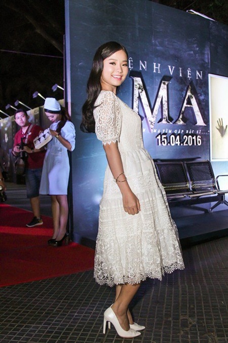 | Khánh Hiền dịu dàng và nữ tính với váy ren trắng. |