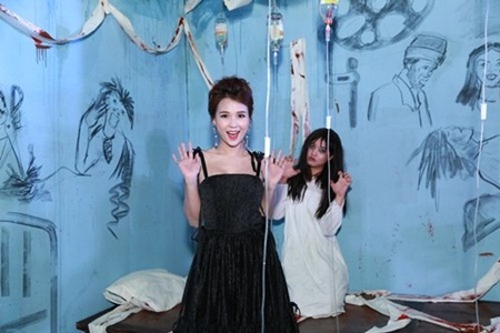 Trấn Thành không ngần ngại lau mồ hôi cho Hari Won trong buổi ra mắt phim "Bệnh viện ma".
