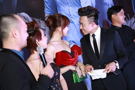 Hari Won luôn song hành cùng Trấn Thành như hình với bóng trong suốt buổi ra mắt phim. |