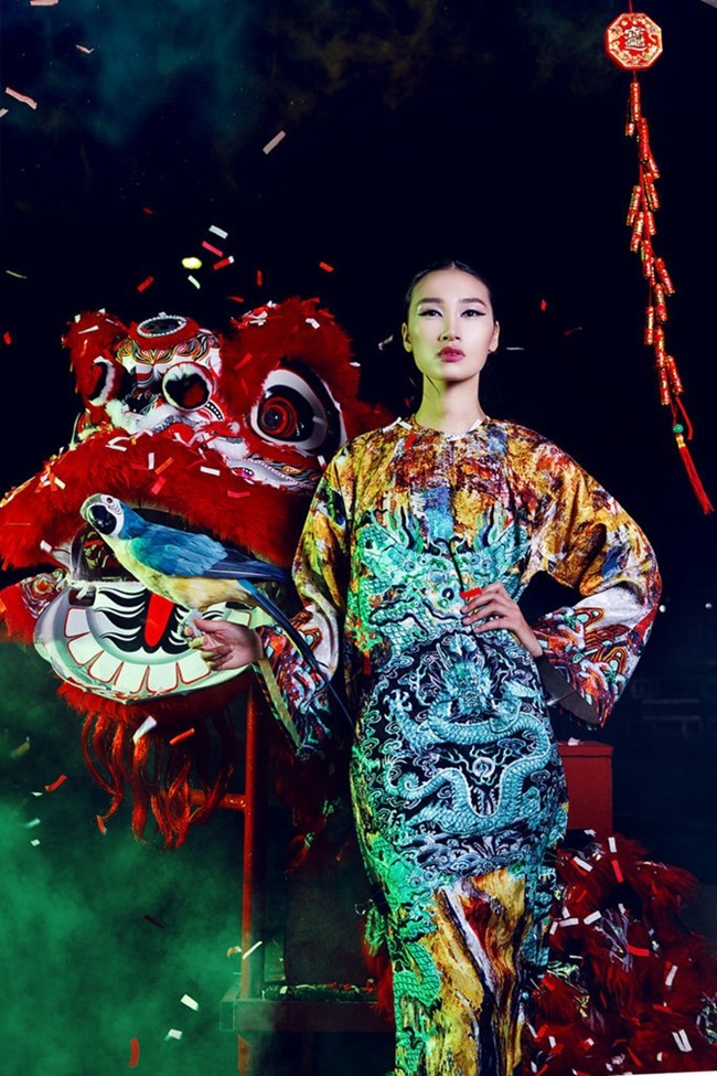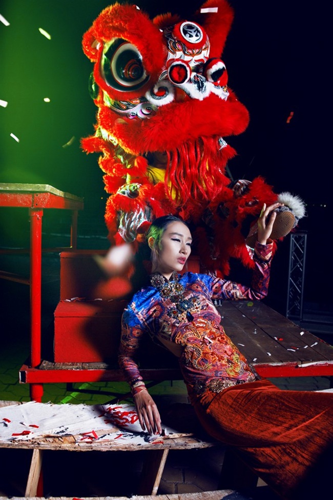 Kết hợp cùng Trang Khiếu thể hiện bộ ảnh mang chủ đề trung thu là chú lân, hình ảnh tượng trưng cho mùa lễ hội tại Việt Nam. |