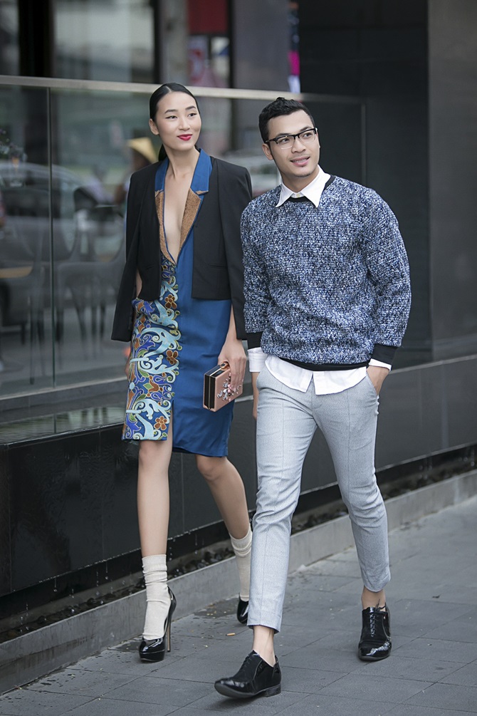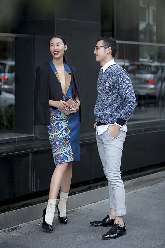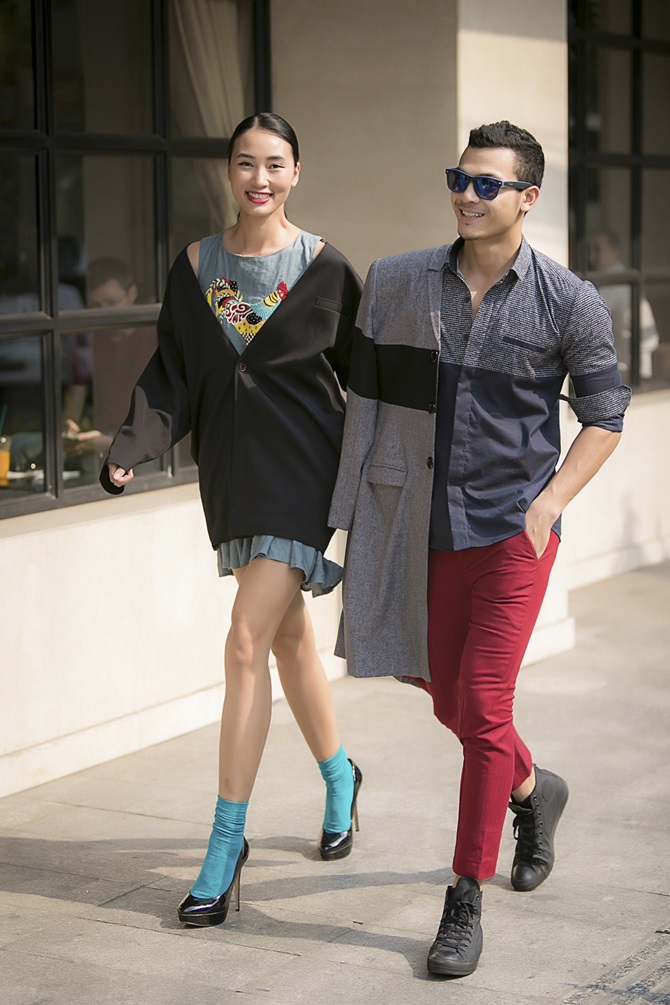 Với bộ cánh tiếp theo hình ảnh cả hai theo đuổi vẫn là thanh lịch và độc đáo. Trang Khiếu rất biết cách lựa chọn những bộ cánh độc lạ để tạo nên một phong cách riêng của bản thân. |