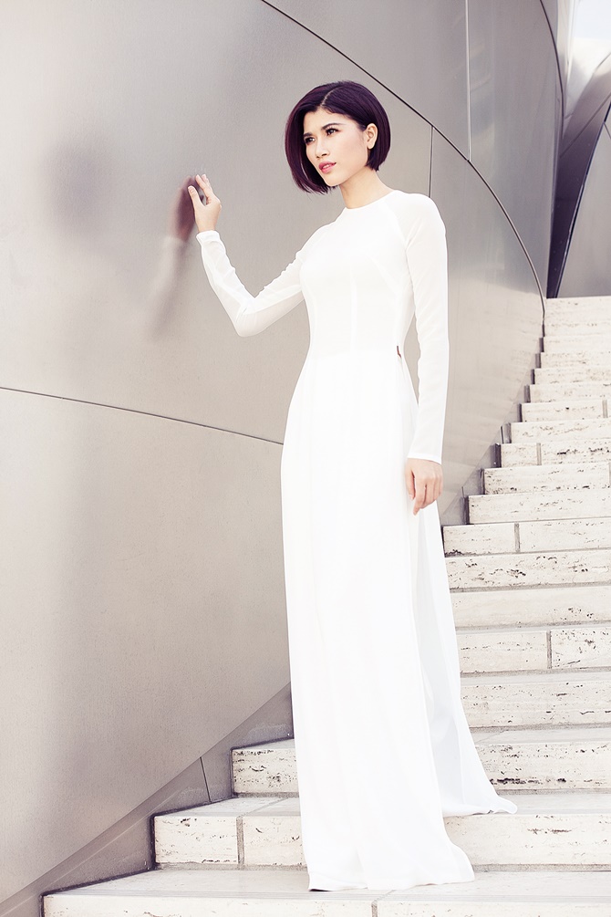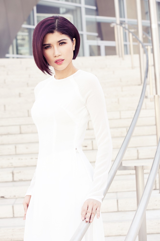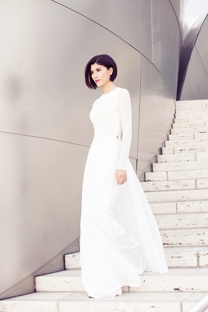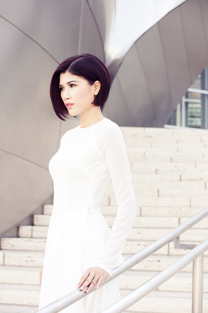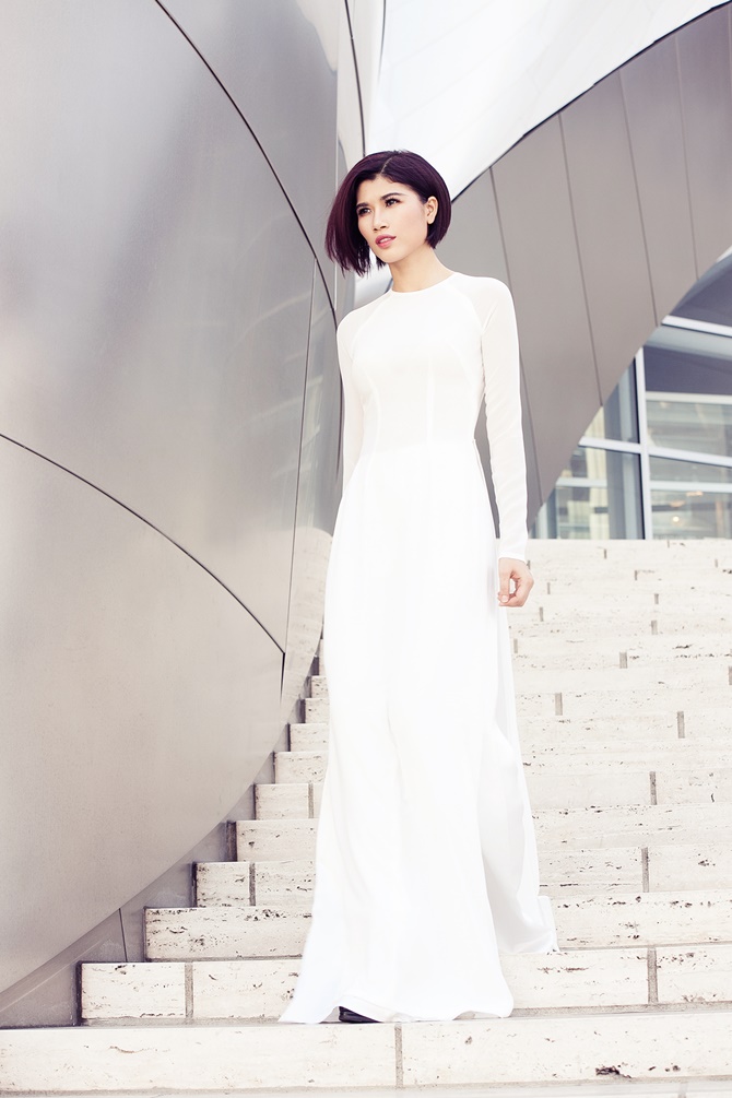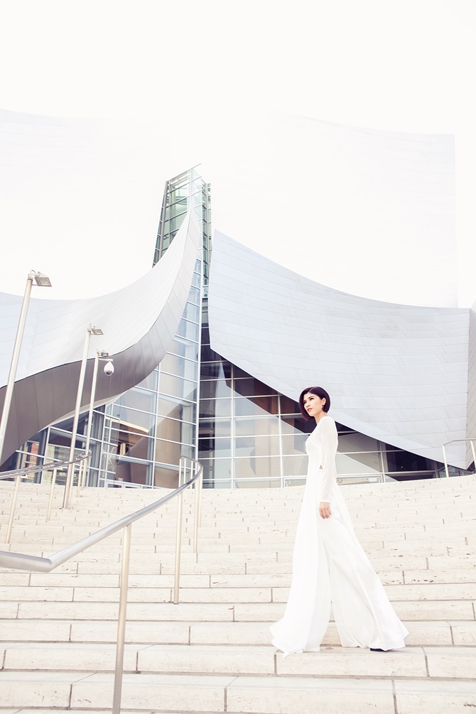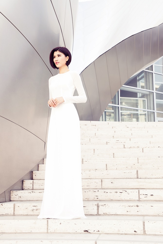 (ĐSPL) - Xuất hiện với áo dài nữ tính dịu dàng của người con gái Việt Nam, Trang “lạ” khoe dáng vẻ trẻ trung, gợi cảm và duyên dáng trên đất Mỹ.