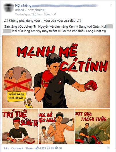 (ĐSPL) - Sau một giờ đăng tải, bộ tranh vẽ khắc hoạ khí phách đàn ông với nguyên mẫu là nam tài tử Johnny Trí Nguyễn bị cho là “đá đểu” Kenny Sang và Quân Kun đã khiến fans của 2 “hotboy” này "nóng mắt".