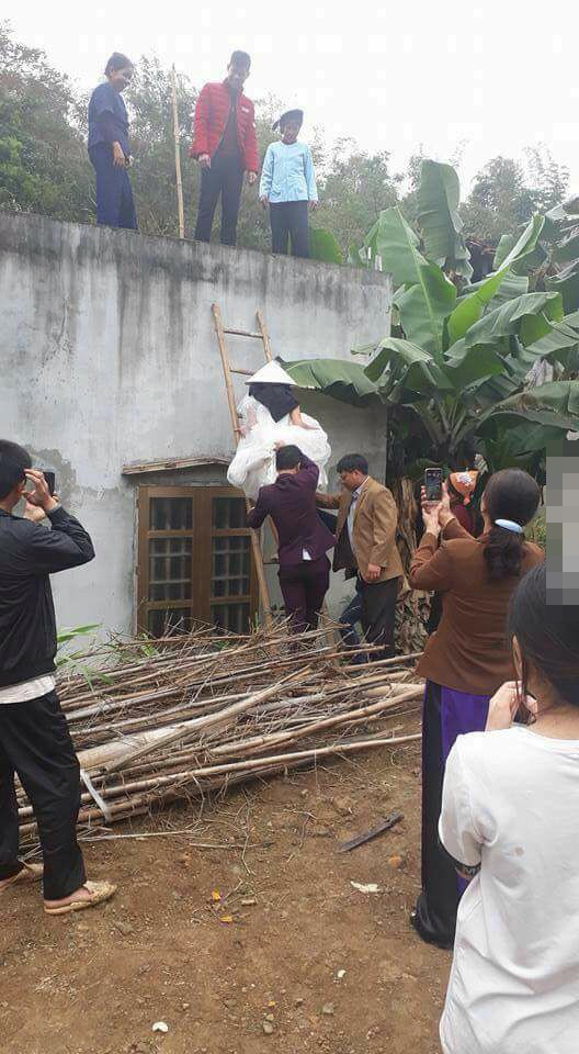 2k17 rồi vẫn còn cái phong tục cổ hủ như thế này à. Cô dâu chửa trước mới cưới, nhà chồng không có cửa sau nên phải trèo tường sau nhà như thế này đây. Cưới mà ko chửa, đàng hoàng đi cửa trước về không đẻ được cũng nói. Công bao nhiêu năm người ta chăm bẵm cô con gái nâng như nâng trứng, hứng như hứng hoa về nhà chồng bị bịt mặt khăn đen lại còn bầu bí phải leo trèo như thế này thử hỏi xem có bố mẹ nào ko đau lòng cơ chứ.