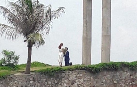 Bức ảnh Vũ quỳ gối trước cô gái bí ẩn đang được lan truyền với tốc độ chóng mặt. |