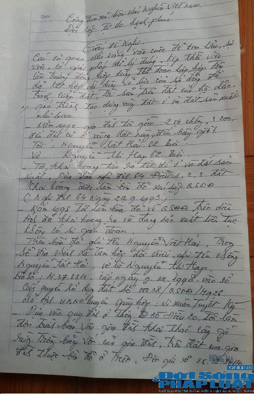 | Giấy đề nghị cơ quan chức năng vào cuộc của gia đình ông Nguyễn Tất Hải. |