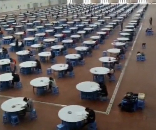 Không cần phải cử 2, 3 giám thị đi qua đi lại, liếc ngang liếc dọc để coi trừng 'có đứa coi bài', 'có đứa chép phao' trong kỳ thi cử như những năm trước. Mới đây, trường Đại học Sư phạm ở Vân Nam, Trung Quốc diễn ra kỳ thi cuối kỳ đặc biệt. Để tránh gian lận thi cử, thay vì được tổ chức trong phòng học, cuộc thi lại được tổ chức ở nhà ăn - nơi thoáng đãng, khó có thể gian lận.