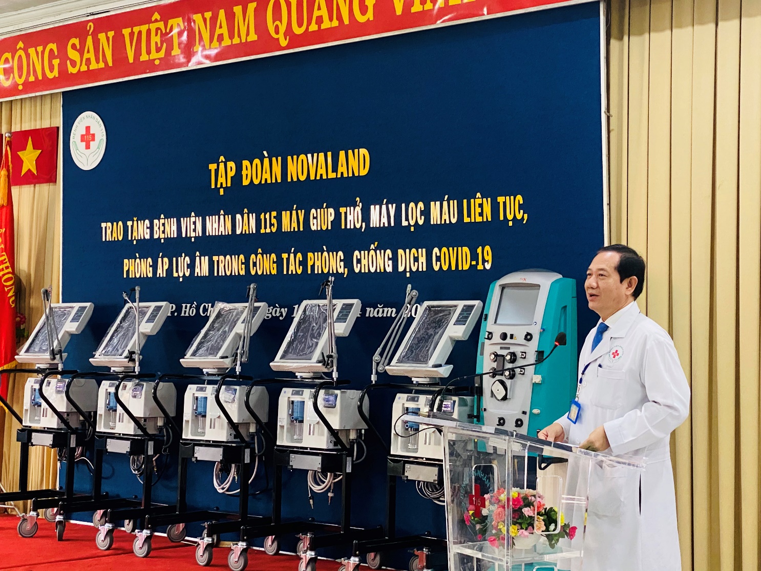 “Bên cạnh đội ngũ Bác sỹ giàu kinh nghiệm, những máy móc hiện đại tiếp nhận từ Tập đoàn Novaland lần này đều quý giá trong việc điều trị suy hô hấp do Covid-19 nhằm cứu sống được nhiều người bệnh, đồng thời còn bảo vệ các nhân viên Y tế - những người làm việc trong môi trường nguy cơ cao không bị lây nhiễm, duy trì nguồn lực chăm sóc người bệnh. Đây là tiền đề quan trong để Bệnh viện sẵn sàng ứng phó với những tình huống xấu nhất, hạn chế đến mức thấp nhất mức độ nguy hiểm và thiệt hại do dịch bệnh gây ra” - Ts.Bs. Phan Văn Báu - Giám đốc Bệnh viện Nhân dân 115
