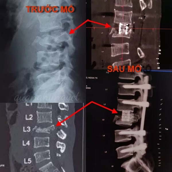 CT thân đốt sống trước và sau phẫu thuật. Ảnh: Người lao động |