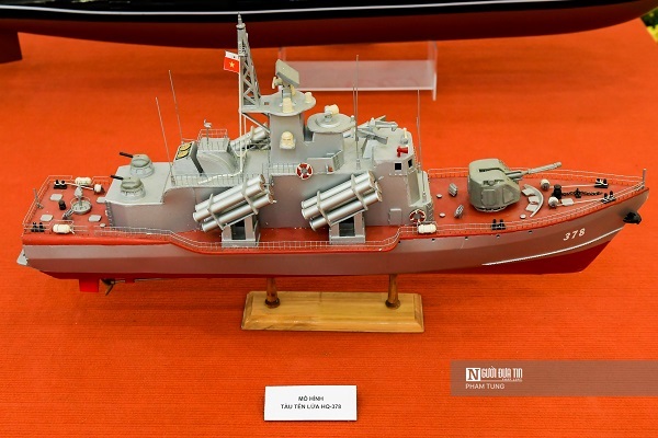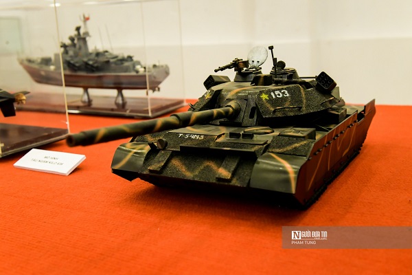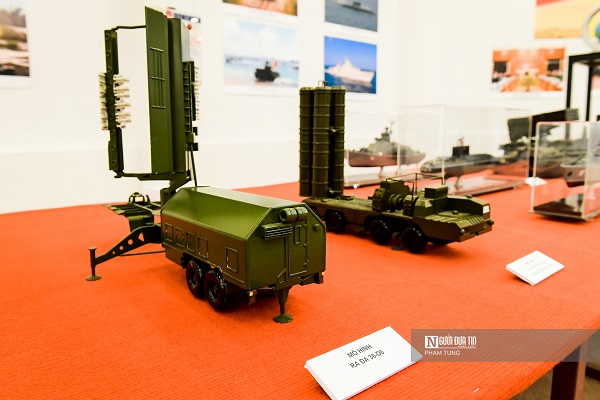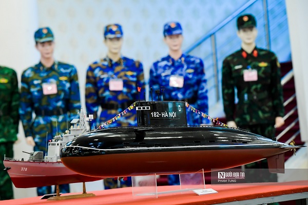Nhiều mô hình, khí tài quân sự được trưng bày tại triển lãm. Trong ảnh là mô hình tàu ngầm KILO 636. |