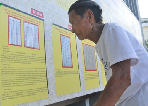 | Một người dân chăm chú xem tư liệu được trưng bày tại Triển lãm. Ảnh: L.H |