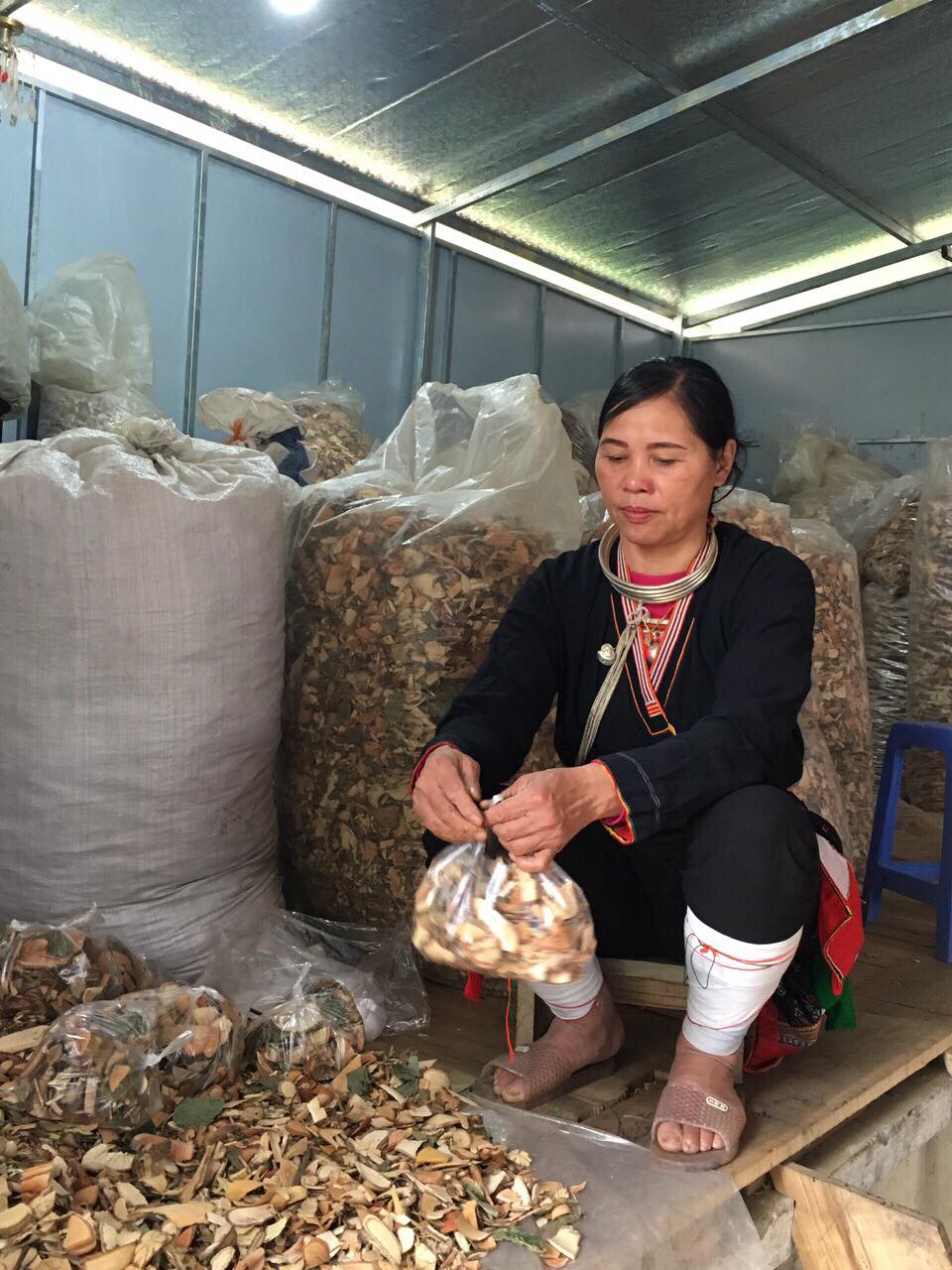 Thuốc được phơi khô, bảo quản trong túi nilong |