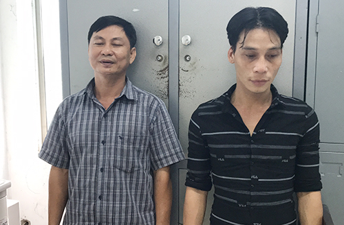 Nghĩa (trái) và Thoảng tại cơ quan điều tra. Ảnh: VnExpress |