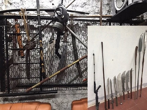 Các loại đao, kiếm tại nhà Ng.H.C. Ảnh: Công an TP Hà Tĩnh cung cấp. |