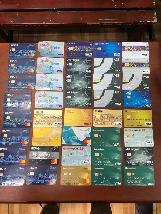 Thẻ ATM các đối tượng dùng để rút tiền. Ảnh: Công an TP.HCM |