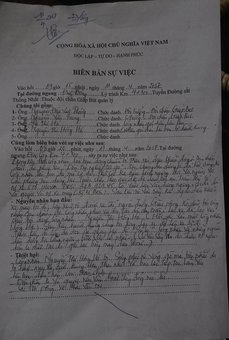 Công ty cổ phần Đường sắt Hà Hải (Tổng công ty Đường sắt Việt Nam) đã có mặt lập biên bản vụ việc, chụp lại biển số xe ô tô 7 chỗ trên, báo cáo cơ quan chức năng.