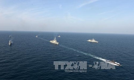 Tàu chiến của hải quân Hàn Quốc tham gia một cuộc tập trận. Ảnh: YONHAP |
