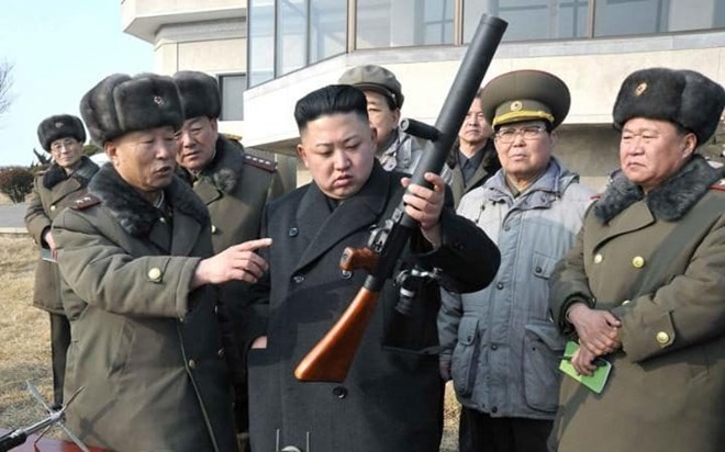 Nhà lãnh đạo Triều Tiên Kim Jong Un trong một buổi thị sát quân đội. |